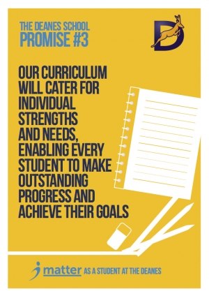 At The Deanes, our curriculum is underpinned by our iMatter ethos and values. Our curriculum is instrumental in the fulfilment of our iMatter Promises. Our curriculum not only reflects the needs of our students and our community, but it promotes a love of learning and personal growth.